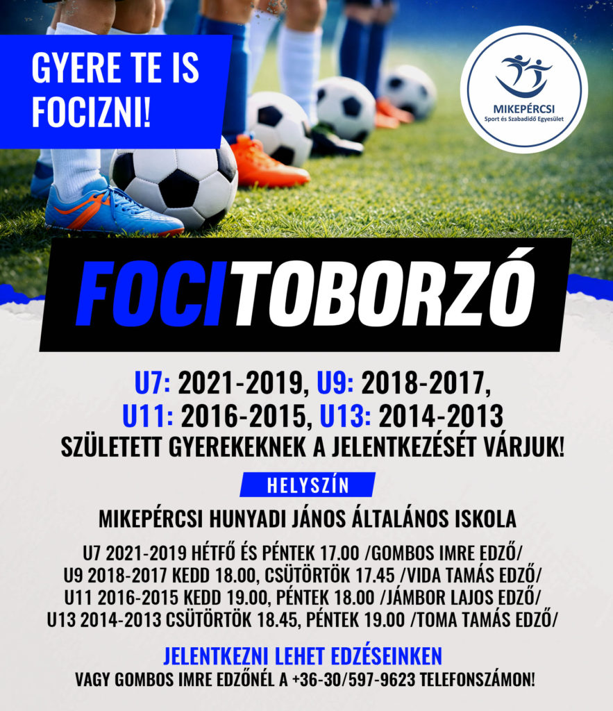 A Mikepércsi Sport és Szabadidő Egyesület szeretettel vár minden focizni vágyó gyermeket utánpótláscsapataiba!Ha gyermeked szeret mozogni, csapatban játszani, és kipróbálná magát a …